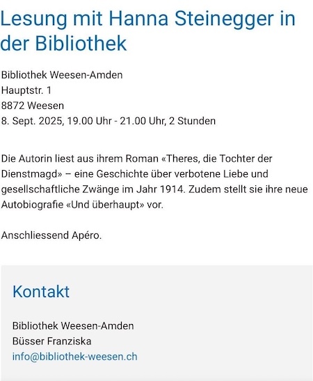 Lesung: Frauen Richterswil/Samstagern Mein Dank geht an die Organisatorinnen!